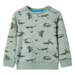 Deze trui voor kinderen heeft lange mouwen, een ronde hals en geribbelde randen aan de manchetten, halslijn en onderkant. De kindertrui is gemaakt van 95% katoen en 5% elastaan, waardoor hij comfortabel en ademend is. De kindertrui heeft een patroon van krokodillen.