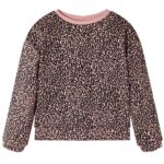Deze kindertrui heeft lange mouwen, een luipaardprint en een ronde halslijn van ribgebreide stof. De trui is gemaakt van 95% katoen en 5% elastaan, waardoor hij comfortabel is en een ademend vermogen heeft. De zachte fleecevoering zorgt voor extra warmte.