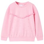 Deze kindertrui heeft een ronde hals en lange mouwen en heeft een ontwerp met kleurrijke stippen en franjes. Deze roze kindertrui is gemaakt van 95% katoen en 5% elastaan en voelt zacht en comfortabel aan.