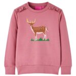 Deze trui voor kinderen heeft lange mouwen, een ronde hals en geribbelde randen aan de manchetten, halslijn en onderkant. Op de kindertrui is een mooi hert afgedrukt en de trui heeft ook ruches. Hij is gemaakt van 95% katoen en 5% elastaan, waardoor hij zeer comfortabel en ademend is. De zachte fleece voering zorgt voor extra warmte.