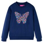 Deze trui voor kinderen heeft lange mouwen, een ronde hals en ribgebreide randen aan de manchetten, halslijn en onderkant. Op de kindertrui staat een vlinder van kleurrijke stippen afgebeeld. De trui is van 95% katoen en 5% elastaan gemaakt, waardoor hij comfortabel is en een ademend vermogen heeft. De zachte fleecevoering zorgt voor extra warmte.