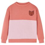 Deze trui voor kinderen heeft lange mouwen, een ronde hals en geribbelde randen aan de manchetten, halslijn en onderkant. De kindertrui heeft een blokontwerp en om het nog leuker te maken zit er een badge met een kat op de voorkant. De trui is gemaakt van 80% katoen en 20% polyester, waardoor hij comfortabel en ademend is. De zachte fleecevoering van de kindertrui zorgt voor extra warmte.