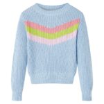 Deze kindertrui heeft lange mouwen, een ronde hals en een rechte pasvorm. De kindertrui heeft een kleurrijk V-vormig patroon. Hij is geribbeld en is gemaakt van 100% katoen, wat zorgt voor extra warmte en comfort.