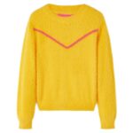 Deze kindertrui heeft lange mouwen, een ronde hals en een rechte pasvorm. De kindertrui heeft V-vormige patronen. De kindertrui is gemaakt van zacht materiaal met polyamide, viscose en polyester, wat zorgt voor extra warmte en comfort.
