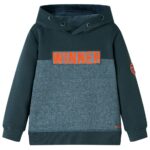 Deze kindertrui met capuchon heeft lange mouwen en geribbelde machetten en zoom. Op deze donkergroene hoodie staat het woord ‘winner’ afgebeeld. De kinderhoodie is gemaakt van 92% katoen en 8% polyester dat met een silicone- en enzymwassing is behandeld, zodat hij zacht en comfortabel aanvoelt.