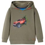 Deze kindertrui met capuchon heeft lange mouwen en geribbelde machetten en zoom. Op deze kindertrui staat een terreinwagen afgebeeld. De kinderhoodie is gemaakt van zacht materiaal met 92% katoen en 8% polyester, waardoor hij comfortabel en ademend is. De zachte fleecevoering zorgt voor extra warmte.