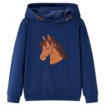 Deze kindertrui met capuchon heeft lange mouwen en een elastische zoom. Op de trui staat een paard afgebeeld. Deze kinderhoodie is gemaakt van katoen en elastaan, waardoor hij zacht en comfortabel aanvoelt.