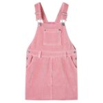 Deze kindertuinjurk heeft verstelbare schouderbandjes, knopen aan de zijkanten en opgestikte zakken. De kindertuinjurk is gemaakt van zacht ribfluweel met 58% katoen, 37% polyester en 5% elastaan, wat voor extra comfort zorgt.