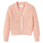 Dit kindervest heeft lange mouwen, een lage V-hals en sluit met een rij knopen. Dit kindervest is gebreid met zacht materiaal van 60% katoen, 21% polyester en 19% acryl, wat zorgt voor extra warmte en comfort. Het katoenrijke, korte vest heeft ribgebreide randen aan de zoom en mouwen.