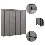 Hij wordt gekenmerkt door een stevig ijzeren frame, waardoor het kledingrek gemakkelijk te verplaatsen en buitengewoon duurzaam is. Daarnaast heeft de kast 4 vakken die voldoende ruimte bieden om tassen, schoenen en kleine spullen geordend en binnen handbereik te houden. De stoffen hoes met ritsen beschermt je kleding tegen vuil en stof.