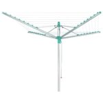 De Leifheit Linomatic 400 wasmolen is uitgerust met het Leifheit mechanisme die de lijnen intrekt bij het inklappen. De molen heeft een licht, open ontwerp met frisse turquoise details.
