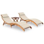 Met deze 2 houten ligbedden en tafel heb je op je terras of in je tuin altijd een comfortabele plaats om te ontspannen. De unieke houten structuur is uitnodigend en straalt een natuurlijke charme uit.