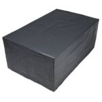 De donkergrijze hoes is gemaakt van uv-bestendig polyethyleen en beschermt je tuinmeubelen tegen diverse weersomstandigheden en stof.
