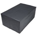 De donkergrijze hoes is gemaakt van uv-bestendig polyethyleen en beschermt je tuinmeubelen tegen diverse weersomstandigheden en stof.