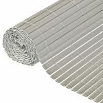 Dit privacyscherm is gemaakt van PVC met een uv-bestendige coating en kan aan een bestaand hek worden bevestigd. De halfronde latten worden bij elkaar gehouden met nylondraad.