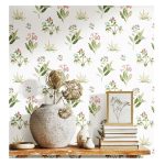 Dit witte en groene behang met bloemen en planten is onderdeel van de Noordwand Blooming Garden 6 Flowers and Plants collectie, met een grote verscheidenheid aan behang met botanische prints van moderne tot romantische ontwerpen in mooie, trendy kleuren.