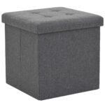 Dit opslagkrukje is gemaakt van MDF en is bekleed met kunstlinnen, dat duurzaam, stabiel en comfortabel is om op te zitten. De grijze kleur zorgt ervoor dat vlekken en stof niet makkelijk te zien zijn. Het heeft een afneembaar zitvlak en heeft voldoende opbergruimte om een groot aantal verschillende spullen buiten het zicht en toch binnen handbereik te houden. Als de kist niet in gebruik is, kan hij ingeklapt worden om ruimte te besparen.