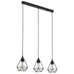 De mooie en moderne metalen plafondlamp, bestaande uit 3 diamantvormige lampenkappen, is een blikvanger in elke ruimte. Hij is een perfecte toevoeging aan eetkamers, bars, foyers, cafés en andere ruimtes.