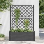 Plantenbak hoog met latwerk en zelfbewateringssysteem antraciet