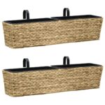 De plantenbak is gemaakt van zeer duurzame waterhyacint. De strakke weefstructuur en 2 metalen houders zorgen voor een gladde afwerking en goede stabiliteit. Daarnaast beschikt de plantenbak over 2 kunststof potten, waardoor de set lang meegaat. Je kunt allerlei levendige groene planten en bloemen netjes in de potten plaatsen.