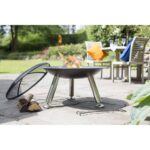 De vuurschaal heeft een zwarte poedercoating en roestvrijstalen poten. Hij is een echte blikvanger en heeft een grote schaal met een diameter van 75 cm, waarin grote stukken brandhout passen. De verstelbare poten zorgen voor een stabiliteit en stevigheid op elke ondergrond. Dankzij het vonkenscherm blijven alle kolen en as in de schaal wanneer je het hout aansteekt..