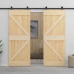 De deur is gemaakt van massief grenenhout, waardoor hij buitengewoon stabiel en duurzaam is. Je kunt de houten deur ook naar eigen smaak decoreren of schilderen dankzij de neutrale kleur. De levering bevat beslag voor eenvoudige installatie. Deze gepoedercoat stalen set draagt bij aan de stevigheid.