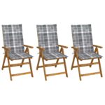 De klapstoel is gemaakt van massief acaciahout, een tropisch hardhout, waardoor hij stabiel en duurzaam is. Het met olie afgewerkte oppervlak is gemakkelijk schoon te maken met een vochtige doek. De eetkamerstoel is in 5 standen verstelbaar, waardoor hij optimaal zitcomfort biedt. Hij kan ook worden ingeklapt om ruimte te besparen wanneer hij niet wordt gebruikt. De meegeleverde kussens bieden extra comfort tijdens het loungen of dineren. Elk kussen heeft twee sets touwtjes aan beide kanten en een elastische band achter de rugleuning, om het kussen strak aan de stoel te bevestigen.