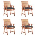 Deze moderne houten eetstoelenset met kussens voegt een vleugje natuurlijke stijl toe aan je tuin of terras. Deze houten stoelenset is een perfecte keuze als je buiten wilt eten.