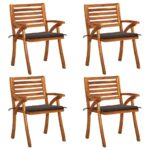 Deze buitenstoel is gemaakt van massief acaciahout, een hardhout met dichte nerven. Deze prachtig vormgegeven set is stabiel, duurzaam en opvallend. Het met olie afgewerkte oppervlak maakt het gemakkelijk schoon te maken met een vochtige doek. De armleuningen zorgen voor meer zitcomfort. Deze armstoelen met gelat ontwerp zijn zowel praktisch als decoratief. Bovendien zorgen de meegeleverde kussens voor extra comfort. Elk kussen heeft 2 sets touwtjes om het stevig aan de stoel te bevestigen.