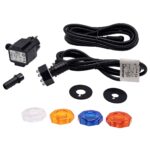 Deze set bevat de vereiste transformator en een 5 meter lange stroomkabel, hij bevat dus alles wat u nodig heeft om uw onderwaterverlichting aan te sluiten.