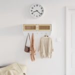 Wandkapstok bewerkt hout en natuurlijk rattan wit