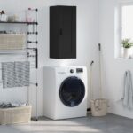 Wandkast 34,5x34x90 cm bewerkt hout zwart