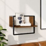 Wandschap met stang 40x25x30 cm bruin eikenkleur