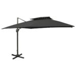 Het parasoldoek is gemaakt van uv-beschermend en anti-vervagend polyester waardoor het je optimale bescherming tegen de zon biedt en het gemakkelijk schoon te maken is. De parasol beschikt over een stevige kruisvoet die bijdraagt aan de stabiliteit. Het exclusieve ontwerp van deze parasol stelt je in staat om de parasol te kantelen en 360 graden te draaien om zo de zon te kunnen blokkeren. De sterke aluminium paal, samen met de 8 baleinen, maakt de parasol zeer stabiel en duurzaam. Deze tuinparasol kan eenvoudig geopend en gesloten worden dankzij het zwengelmechanisme. Het dubbele dak zorgt voor extra ventilatie.
