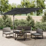 Deze elegante zweefparasol met een dubbel dak is de perfecte keuze om wat schaduw te creëren en jezelf te beschermen tegen de schadelijke uv-stralen van de zon.
