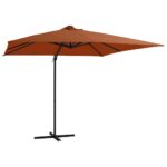 Het parasoldoek is gemaakt van uv-beschermend en anti-vervagend polyester, waardoor het je optimale bescherming tegen de zon biedt en gemakkelijk schoon te maken is. Het beschikt over 24 solar aangedreven LED’s die automatisch je buitenruimte verlichten en een gezellige en romantische sfeer creëren als de zon ondergaat. De parasol wordt ook geleverd met een stevige kruisvoet die voor stabiliteit zorgt. Het exclusieve ontwerp van deze parasol stelt je in staat om de parasol te kantelen en 360 graden te draaien. De sterke stalen paal, samen met de 8 duurzame baleinen, maakt de parasol zeer stabiel en duurzaam. Deze tuinparasol kan eenvoudig geopend en gesloten worden dankzij het zwengelmechanisme.