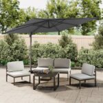 Deze elegante zweefparasol met LED-verlichting heeft een trendy en praktisch ontwerp. Hij is een prachtige aanvulling op je tuin en biedt uitstekende bescherming tegen uv-straling.