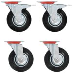 Deze wielen zijn gemaakt van rubber dat zich onderscheidt door een goede schok- en trillingsbestendigheid, waardoor deze wielen soepel en geruisloos rollen. Hun zachte oppervlakken beschermen je vloer effectief tegen krassen. Bovendien is het met zink gecoate ijzeren frame roestbestendig en draagt het bij aan de stevigheid en duurzaamheid van de wielen. Twee van deze wielen zijn uitgerust met dubbele remmen voor flexibel gebruik. Elk wiel heeft een draagvermogen van maximaal 100 kg.